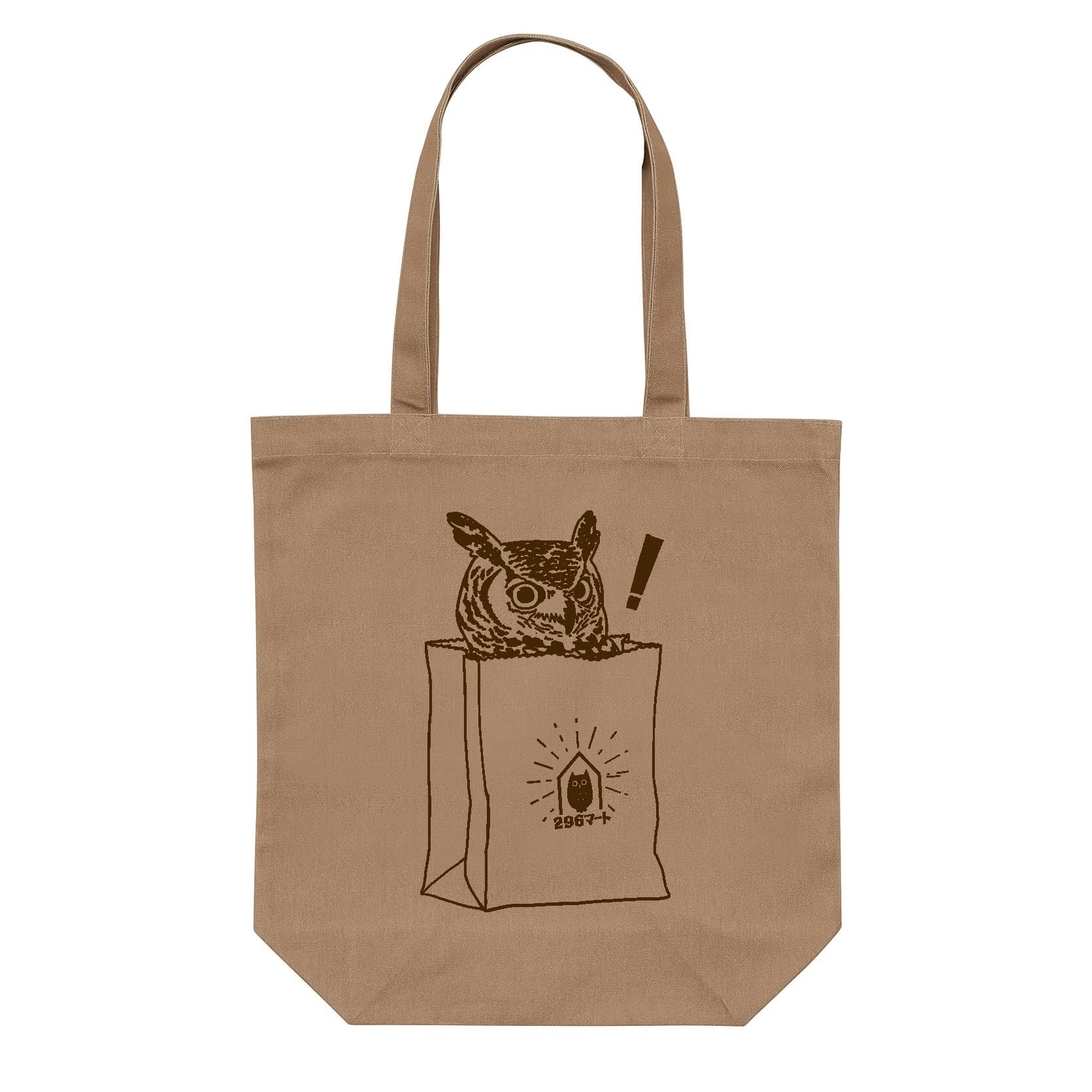紙袋イメージのモカカラーのキャンバストートにブラウンでプリントしています。